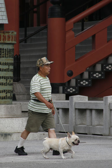 暑さが日増しに厳しくなってきましたね。今朝も猛暑の予感を感じながらもいつもよりちょっと長めの散歩を楽しんできました。こんな暑さの中をなぜ長めになってしまったかというと、今朝の浅草寺境内でロケが行われていたためにいつものような写真を狙うことができなかったからなのです。いつものように決まった位置の写真を撮ろうとすると、若い助監督が“写真を撮るな”と怒鳴りながら飛んで来るのです。冗談じゃないよ、あんたたちを撮ってる訳じゃないんだぞ!とはいっても、毎日の記録を欠かす訳にはいかないので、スタッフの目を盗んでいっぱい撮ってやりましたよ。そんな身勝手な撮影のおかげで、いつもの犬仲間たちもとっても迷惑そうに現場を小さくなって通り抜けていました。