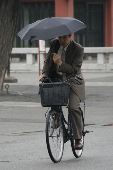 傘のおかげで、今朝の自転車写真はみんなブレブレ、助かった一枚だけでも。