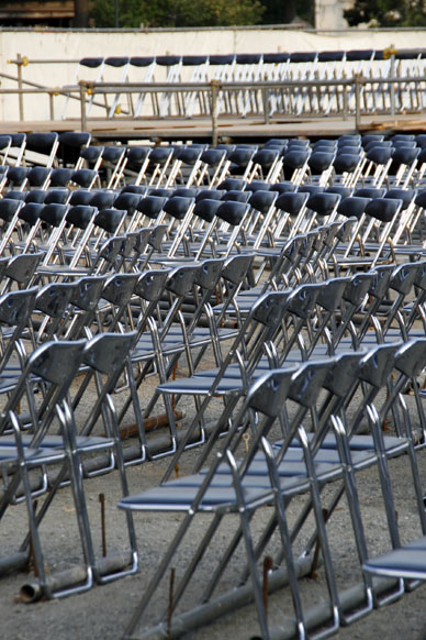 整然と並んだパイプ椅子。台東薪能の会場です。これだけ揃うともの凄い迫力になりますね。いったい何個並べたのでしょう。