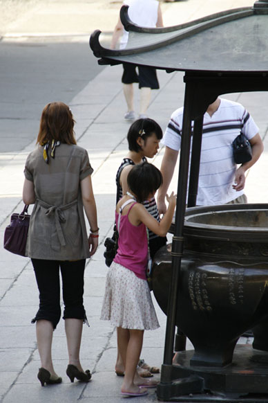 こちらも家族連れ。でも、お爺ちゃんとお婆ちゃんちょっと離れて後から歩いているのです。反抗的な年頃の孫たちなのでしょうけど、でも、一緒にお詣りに着いて来てくれるだけ嬉しいですよね。