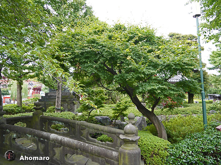 正岡子規句碑「観音で雨に逢ひけり花盛」
