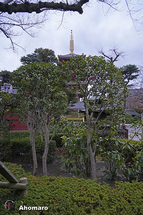 正岡子規句碑「観音で雨に逢ひけり花盛」