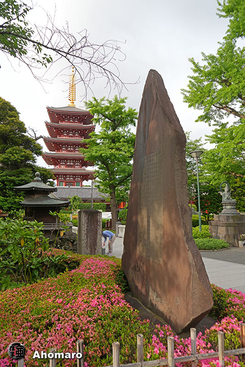 正岡子規句碑「観音で雨に逢ひけり花盛」