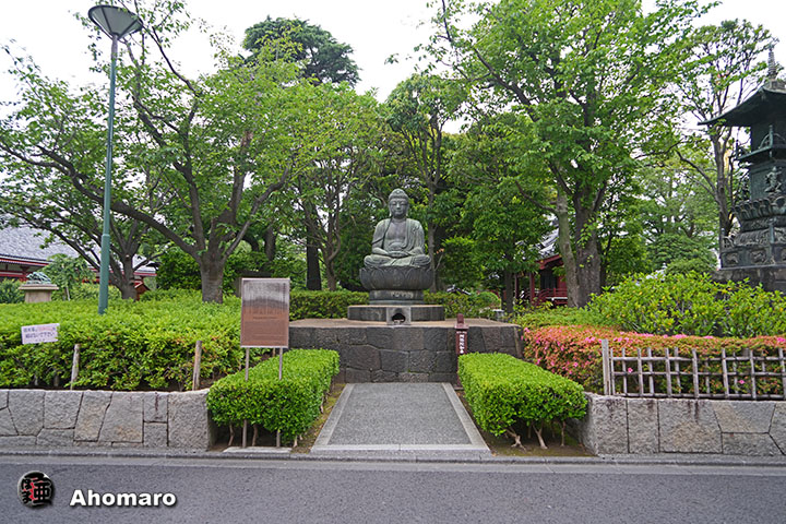 正岡子規句碑「観音で雨に逢ひけり花盛」