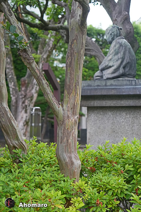 添田唖蝉坊と息子の添田知道の筆塚。人面石「唖蝉坊君」は後ろに移動されてしまいました。