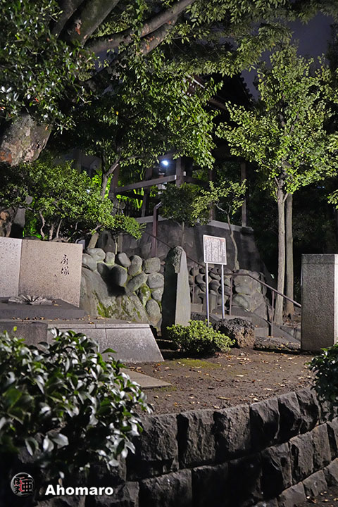 添田唖蝉坊と息子の添田知道の筆塚。人面石「唖蝉坊君」は後ろに移動されてしまいました。