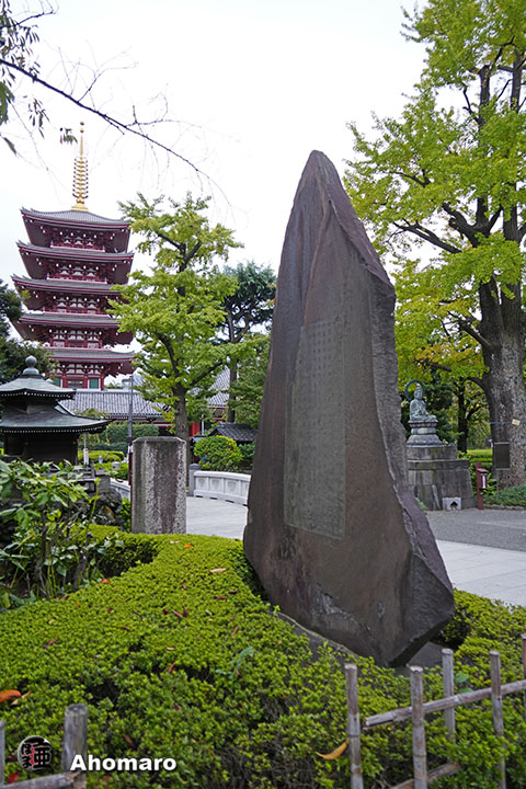 正岡子規句碑「観音で雨に逢ひけり花盛」