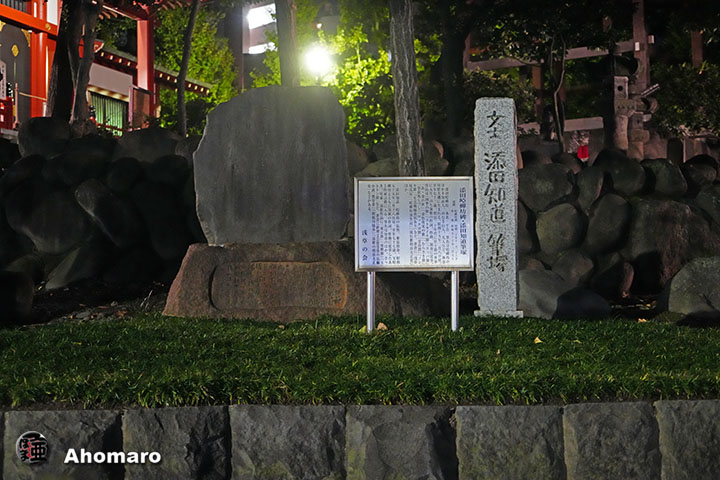 添田唖蝉坊と息子の添田知道の筆塚。人面石「唖蝉坊君」は後ろに移動されてしまいました。