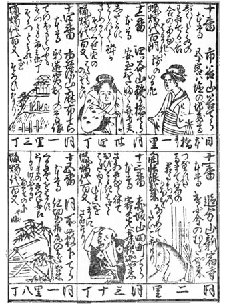 十二番 四ツ谷山鮫が橋てら 本尊 安玉おたふく弁財天 したたかにとられて酔がさめがはし そのくせ穴のはたものぞかず 蝋燭代百文 同四丁
