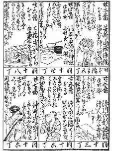 二十四番 同所石場の神社 御神体 ふせ玉大明神 ふせ玉の客ハあてがい次第にて よってとらせぬむりなうりもの 開帳銀二朱 同十四丁