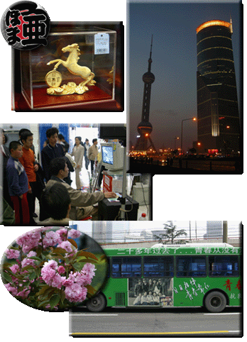 | 中国の長い歴史の中で、わずか30年ほどで、 14億人の中国国民の経済レベルをとりあえず同 レベルにしたのは、ひとえに共産党の活躍に他な らない。10年ほど前、中国共産党の幹部が話し ていた。確かに文化大革命によって貧富の差を是 正し、この数年間で、一気に解放路線を引いて来 た結果が、今の中国の発展を促したのは間違いが 無いが、都市部と農村部の格差はここに来て益々 大きくなってきたのも歪めない事実だ。街には豊 富な商品と、豊かな人が溢れ、年輩の人達は、金 銀宝飾店で競って宝飾品を買いあさる。若者は、 年収の2倍以上もするパソコンに群がり。いつも 品薄の状態なのだとか。今回は僅か2泊3日の滞 在だったが、大きく変わり、更に大きく発展する 中国の息吹を肌で感じた。 今回泊まっている金茂飯店は、黄浦江のほとり に建っているので、夜寝ていても黄浦江を通る大 型船の霧笛が聞こえる。また、夜中であっても何 かの工事の音がひっきりなしに聞こえてくる。そ んな喧噪の中、昨夜は強烈な落雷の音で目が覚め た。窓外を眺めると、日本では見たこともない強 大な稲妻が上海市内に降り注いでいる。普段の雷 なんかは、怖くもなんともないあほまろだが、こ の巨大な稲妻を、地上64階の窓から眺めている と、急に背筋が寒くなる感覚が襲いかかる。もし このビルに落雷が来たらどうしよう。そうだ、非 常階段の位置を確かめて居なかった。慌てて着替 え、ホテルの非常階段を確かめに飛び出すほどだ った。 そんな訳で、上海最後の夜は寝不足状態で明け た。今日は、仕事も無くこれから市内のデパート にでも行って何かおみやげでも買ってから空港に 向かうことにする。この2日間、浅草日記が浅草 からの発信ができなかったが、明日はまたモモち |