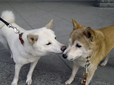 浅草寺の本堂前の階段で先に出かけたナナちゃんと出会いました。ナナちゃんは喜んでじゃれて来るのですが、モモちゃんはとっても迷惑そうにしていましたよ。もっと優しくしてあげても良いのにね・・・。