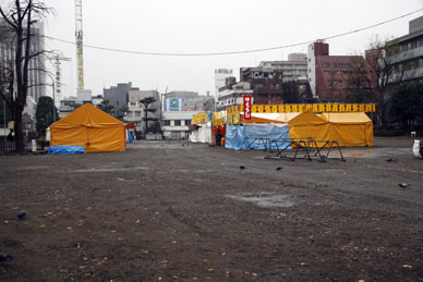 浅草寺裏広場の屋台村(?)、どんどん居なくなってしまいましたね。昨日に比べて半分以下になってしまいました。