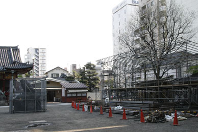 宝蔵門が完成したようですけど、未だに両側の仁王様はシートに包まれ、「小舟町」の大提灯も大ワラジも取り付けられていないので、まだ完成といってはいけないのでしょうね。