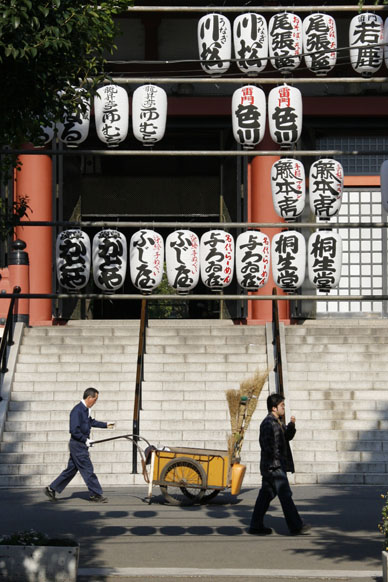 今朝の境内、連休中とあってメールなどでお話をしていて、まだお逢いしたことが無い方や、久しぶりにお逢いする方など楽しい出会いがありました。あほまろが朝の浅草日記を書き始めて今年の3月で8年目に入ります。書き始めの頃は、まだほとんどの方のネット環境が電話接続だったこともあって、小さな写真1〜2枚程度と簡単な文章だけで浅草の朝を紹介していたのです。それでも、みなさんから写真が多すぎて遅いとの苦情メールも多かったのです。その後、ISDNの普及を皮切りにケーブルテレビネットと環境が整い、それによって写真や文章の量もどんどん増えていっても、遅いなどの苦情は全く無くなってしまいましたよ。今ではほとんどの会社や自宅にもADSLや光ネットになってしまったので、もっと大きく鮮明な写真が見たいなどのメールも来るほどなんですよ。