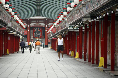 今は、ほおづき市の骨組みで通路が狭まっていますよ。