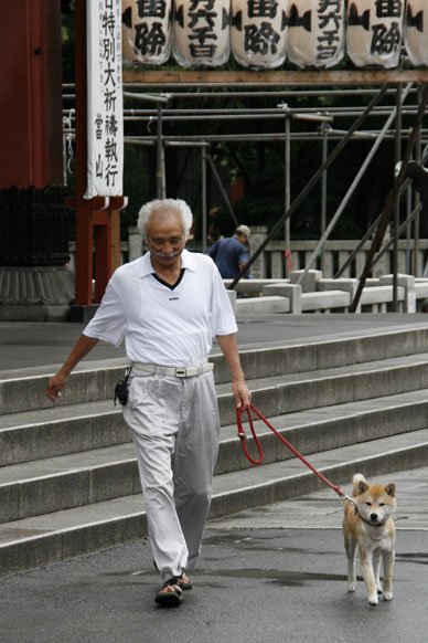 ほおづき市のパイプと、撮影の連中でごった返す境内、ワンちゃんも迷惑そうでした。