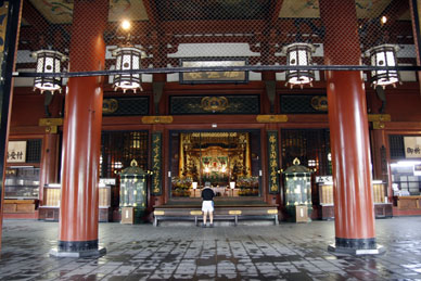 四万六千日の飾りが取れ、すっきりとした姿に戻った浅草寺本堂です。