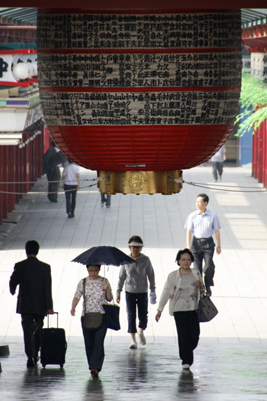 毎朝、浅草寺境内を訪れる方の写真を撮っていて気付くのは、みなさんカメラを向けられているのに気付いていないことなのです。理由は、写真でもお解りの通り、目線がモモちゃんに行ってるからなのです。これじゃ自分が撮られているなって絶対に思っていないでしょうね。きっと、本堂を撮っているのだろうとね。