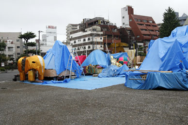 今朝も撮影が行われるのでしょうか。誰も居ないのに、テレビカメラだけが寂しく立っていました。盗まれても知らないよ。