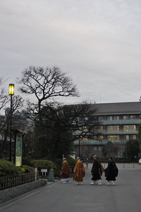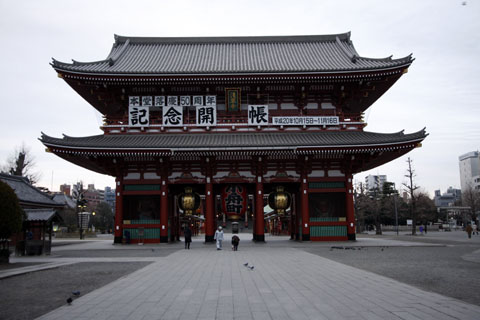 まだ暗い雷門前です。ここに雪が積もった様子が綺麗に撮れたのは、確か4〜5年前の年末でしたね。あの時は、人力車の岡崎屋さんが、「猿が去る」と、猿のしんちゃんをロバに乗せて雷門前をパレードした時でしたね。猿が去る年なので、2004年のことでしたんね。あれ以来、ここには雪らしい雪が降っていないんだな・・・。