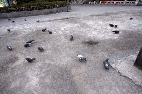 修復工事中の二天門の真ん前に日本堤消防署があります。もし、浅草寺で火災が起こったとしても、目と鼻の先、まるで浅草寺お抱え消防所なのですよ。 初観音縁日の18日まで飾られていたお正月飾りも取り外されましたが、飾られていたコモ樽はいったいいつまで置かれているのでしょうね。 もしこれにお酒が入っていたとしたら、二晩もこのままで置いていたら、絶対に盗まれてるだろうな。きっと、そのうちにこれを運んで来た京都の酒屋さんのトラックが回収に来るのでしょうね。 寒いので、鳩たちはみんな丸くなって寒さをしのいでましたよ。鳩は羽根の中に空気を溜め、それで暖をとるのです。 『今朝の浅草神社』