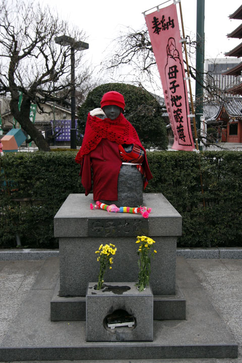 母子地蔵さんには、いつも赤ちゃんのおもちゃんが置かれているのです。清掃員の方もおもちゃ類は片づけないようにしていると話しているのに、いつのまにか無くなってしまうんですよね。今朝も、赤ちゃんのガラガラのようなおもちゃんが置かれていました。まだ正札が付いているのです。 影向堂のお庭の残雪。赤い椿の花との対比が綺麗ですね。 淡島堂の白梅、まだ咲きませんね。明後日8日は針供養、確か昨年の針供養には咲いてましたよね。 こちらは満開の紅梅です。 久米平内堂の白梅もまだ咲いてません。 忘れてました。雷門の東側(本堂側)の屋根にも、また、本堂の東側の屋根にも、まだ雪が残っていましたよ。 『今朝の浅草神社』