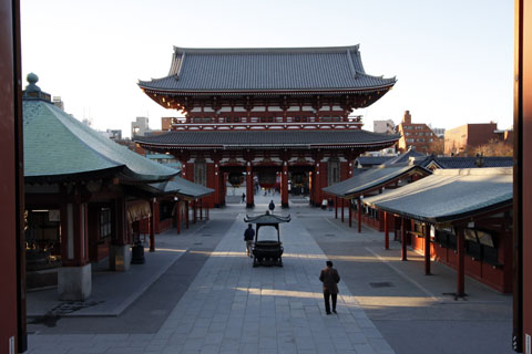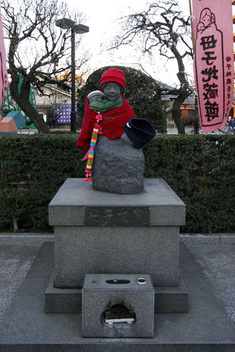 でも、寒い朝は空気が澄んでいるので、青空が綺麗ですよね。 日が上がったばかりなので、濃い青空でしたよ。 ビューホテルに反射する朝日と、浅草寺の新たな名所となるであろう「比翼檜葉」。この位置からだけはホテルのネオンが消えますね。 雷門前の並木通りの中央分離帯に新たに植えられたお花。 母子地蔵の子どもに新しい帽子がプレゼントされましたよ。 五重塔下の紅白の梅「おもいのまま」。 早く開かないかな・・・。 久米平内堂の白梅です。 淡島堂の紅梅です。 あほまろは、白梅が開花する今が冬で一番好きな時期なのです。 そろそろ春の準備を、そんな雰囲気がね。 『今朝の浅草神社』