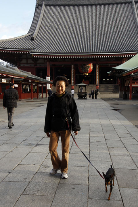 上空では雲の流れがとっても早い朝ですが、地上の風はさほど強く無いようです。それでも、雷門の大提灯がゆっくりと揺れているのでした。 そう、モモちゃんはいつもと変わること無く、あほまろの腕の中で雷門を見ていましたよ。抱っこしながら写真を撮っているあほまろの苦労も気にしないでね。