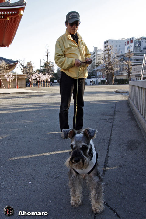 今朝もモモちゃんを抱っこしての散歩です。でも、あほまろの顔と同じ位置まで抱き上げて歩いていると、時々吹き付けて来る冷たい北風はモモちゃんの身体が遮ってくれるのです。直接風を受けるモモちゃんには申し訳無いけど、歩かなくても良いんだから我慢するよね。 昨日、ココアちゃんおおとうさんから教えてもらったペット洋品の通販専門店で、モモちゃん用のお散歩カートを注文しておきました。これで、雨の日は楽になるのでしょうけど、注文確認メールの仕様によると、カートの自重が7キロなのです。それじゃ7キロのモモちゃんを乗せると14キロ。もしかして、毎朝、こんな重たいお荷物を持ち上げながら浅草寺の階段を上らなければいけなくなってしまうのでしょうかね・・・。もっと軽いのを探せば良かったかな。なんて思っても、注文してしまったので使ってみるしかないよね。