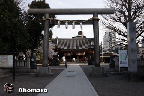 雷門前の白い看板は4月8日の「花まつり(灌仏会)」の案内です。浅草寺では、本堂内、雷門前、宝蔵門前に、様々な草花で飾った花御堂に安置されたお釈迦さまの誕生仏に、甘茶をかけてお詣りするのです。 余談ですが、あほまろ聖誕祭は4月6日。前期高齢者2年目に入るのですよ。