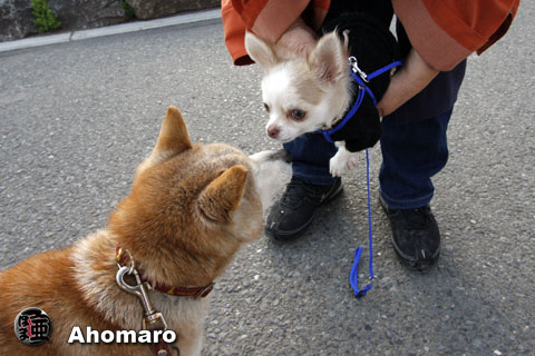 今朝も最初のワンちゃんがサツキちゃんでした。 おや、バビちゃんはもうお帰りですか。今朝は、ちょっと早めに隅田公園まで行って来たのでお疲れでしたよ。 今朝はおかあさんとお散歩のココアちゃん。お決まりのカイカイ。 ほら、カメラを向きなさい。なんていっても、おかあさんのいうことを聞かないココアちゃんでした。これがおとうさんだったら、結構聞くんですけどね・・・。 チョロちゃん。昨日、桜の下で撮った記念写真を差し上げました。 早くおいでよ。遅れたおとうさんを待っているリリーちゃんです。 レオちゃんも、ここまでおばあちゃんと一緒に歩いてきたのですよ。 でも、モモちゃんを見ると怖がって抱っこしてって。モモちゃんは朝のご挨拶をしたかっただけなのにね・・・。 ボクちゃんです。影が格好良かったのですが、近すぎて全体が入らなかったね。 最近は、グンちゃんとショコラちゃん、一緒に散歩しているのです。 ショコラちゃんは亡くなったハニーちゃんに似ているので、モモちゃんは大好きなようです。今朝も一緒にクンクン遊んでました。 同じ犬種でも、こちらはボビーちゃん。ボビーちゃんは他のワンちゃんたちとは遊べないんですよ。好きなのはおばあちゃんだけ。 逆光のゼロ君。影が良いでしょ。 ランディ君、モナカちゃん、ゼロ君。いつもこの辺で遊んでいるのですよ。 それでは今日も記念写真。まずはゼロ君。 そしてランディ。おかあさん恥ずかしそうに下向いてますね。 昨日に続いてモナカちゃん。 ランディ、何かおもちゃんを見付けたな・・・。影はあほまろの姿です。そっか、あほあまろも写りたかったら、このように影の人になれば良いんですよね。