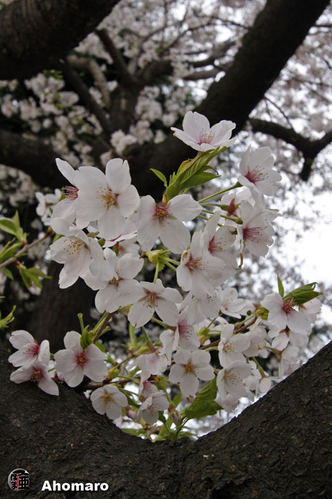 悲しそうな表情で本堂前に歩いて来たお嬢さん。携帯電話を取り出してきょろきょろしていました。これはきっと、写真を撮って欲しいと思っているのでしょう。お節介なあほまろが声をかけると、日本人では無いようでしたが、嬉しそうにほほ笑みながら携帯電話を差し出したのでした。こうして見ると背景の桜まつりの幟がお嬢さんの寂しい表情に明るさを与えてくれているように見えませんか。 |