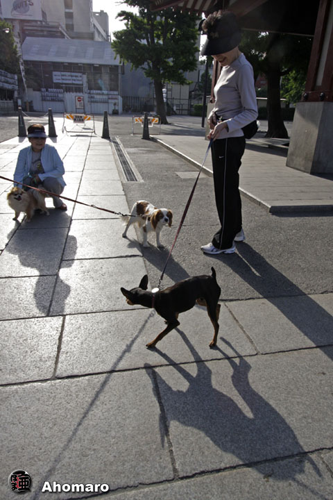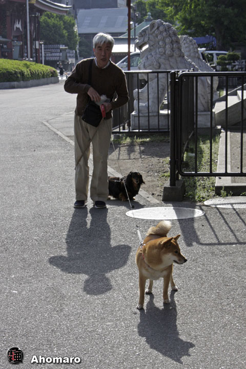カートを使ってたら、益々歩かなくなってしますよ。近所のおばさんが言ってたのが気になって、今朝もカートを使わずにモモちゃんを歩かせたのです。しかし、やはり行きはず〜っと抱っこしっぱなしでしたよ。 雷門前で写真を撮っていると、ダンディとシータが歩いていきました。こっちに気付いて手を振ってましたよ。