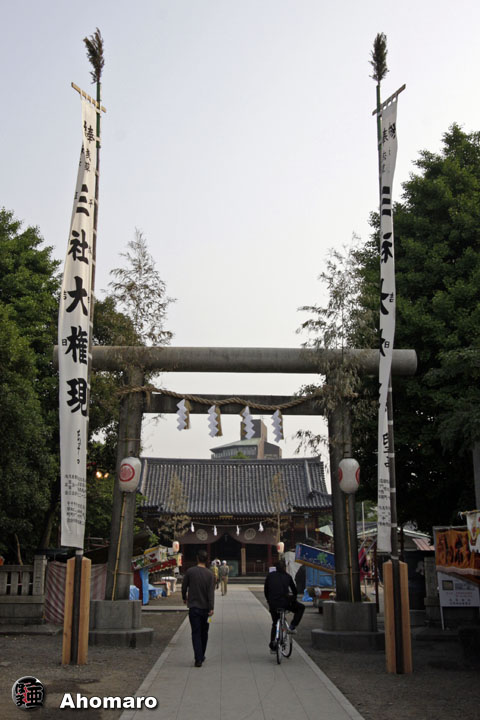 うめぇ梅。 完全に熟したこの梅、ちょっと口に含んでみました。でも、でも・・・、初恋の味はじなかったよ。どっちかというと、後期高齢者の薬の臭い・・・。 でも、二日酔いの日は、梅の臭いは嗅ぎたくない気分。 六角堂のシダレザクラ。 ここだけはまだツツジが咲いています。 最近は、地名を付けた名物が数多く存在しますね。富士宮焼きそば、宇都宮餃子、明石のたこ焼き等々。ここ浅草寺の屋台にも地方の名物が目立っていますよ。でも、でも、今話題の産地偽装とも思えるのですけどね・・・。 『今朝の浅草神社』 今年はここに鎮座したままの本社御輿です。