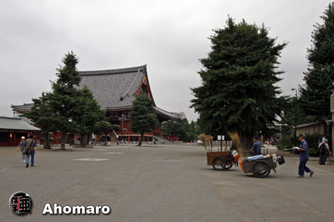 雷門前でメイちゃんのおばあちゃんにお会いしました。これから本堂が開くというのに、もうお帰りです。実は、おばあちゃんはこの暑さで体調を崩してしまったようで、無理して出て来たのでしたが、やっぱり体調が優れないので、今朝はお参りを止めて帰宅するそうです。顔色も悪いようなので、無理せずにゆっくりお休みください。そして、元気を取り戻したてからメイちゃんと一緒にお会いしましょうね。 |