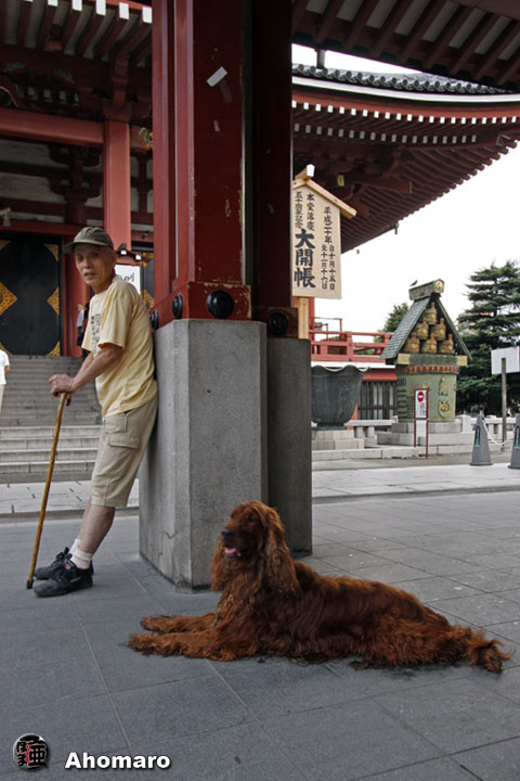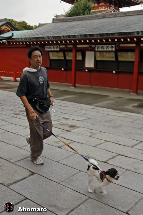 夜半まで降り続いた雨も上がり、今朝は涼しく爽やかな朝。久しぶりに涼しい今朝の散歩、モモちゃんも珍しくほぼ全コースを歩いてくれましたよ。しかし、そのほぼとは、雷門から仲見世の途中だけ、ここだけは絶対に抱っこしてもらうんだ。きっと、モモちゃんの意地なのでしょうか、それとも癖になってしまったのでしょうかね・・・。それは良いとして、それ以外の足取りの軽やかなこと、浅草寺の階段だって飛び跳ねるように元気に駆け上っていくのでした。 雨上がりの境内には、いつも以上に蝉の鳴き声が響いていました。境内の蝉は桜の木を好むのか、どの木にもたくさんの蝉が群れを成して停まっています。鳴き声からしてこの一帯はミンミンゼミが多いようですね。蝉の生態はまだ良く知られていないようですが、種類によって異なるようですが、幼虫として地下生活をしている期間は3〜17年と長く、羽化して成虫になってからの寿命は精々1月ほど、地上に出てくる目的は産卵のためだけともいわれているようです。 子どもの頃、木の保護色になって見付かりにくい蝉、その鳴き声を聞き分けて居場所を特定するのもひとつの技でしたよね。あほまろの友達の中には、蝉とり名人もいたっけ。あの頃の夏休み、何処に出かけることも無く毎日近所の友達と昆虫採集に明け暮れ、様々な種類の蝉を集めて楽しんでいた。今朝は桜の木に群がる蝉の写真を撮りながら、昔を懐かしく思い出しましたよ。そういえば、あの頃も蝉が見付かりやすいのは、雨上がりだったっけ・・・。 ドラマや映画の暑い夏のイメージを表すためBGMに蝉の鳴き声が効果がありますよね。しかし、フランスやイタリアなどの地中海沿岸には蝉を知らない人も多く、以前にもベネチア映画祭に出品し、金獅子賞を逃した映画「千利休」の関係者が教えてくれました。「せっかくの作品なのに、綺麗な自然の場面に入っている妙なノイズが気になった・・・」とか、蝉を知らない国民には妙なノイズにしか聞こえなかったのでしょうね。それ以来、日本映画を海外で上映する時には蝉の鳴き声をは消して出しているそうです。 ノイズといえば、東京都が2016年の五輪招致を見すえて制作されたDVD「東京」の魅力を世界に発信しようと1億円もかけて制作されました。ナレーションはほとんどなく、「映像で一気に見せる」、スピード感あふれる展開が特徴なようですが、「中身は良い。ただ、映像が次々に切り替わるので疲れる。場面が多くノイジーだ」。DVDを観た外国人の感想は良くなかったことが産経新聞に載っていました。新聞社の批評によると、『「ノイジー」とは「騒々しい」以外にも、文字や色が詰め込まれた日本の週刊誌の表紙のような「てんこ盛り」状態のことも指しています。送り手は映像を「凝縮させた」つもりでも、彼には「情報過多」に映ったようです。(産経新聞)』。 蝉の声に慣れてしまった日本人の感性、それがまるで空気のような当たり前の感覚と同様、まるで週刊誌の中吊り広告のようにさわり部分で興味を持たせる。外国人には、そんな映像に見えてしまったのでしょうね。 あほまろも映像を創る立場、あれもこれもと欲張ったことが、自己満足になってしまうのは怖いですね。映画の撮影も残すところ3〜4日になってしまいました。その後は編集作業に入ります。これからの作業も、観る人に「ノイジー」な印象を与えないように気をつけなくっちゃね。