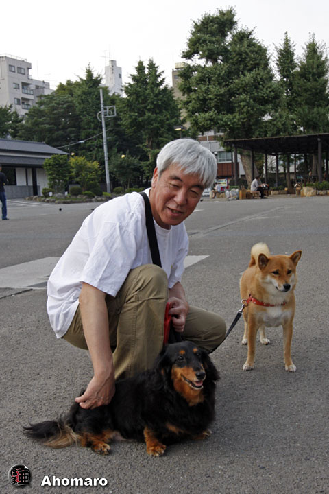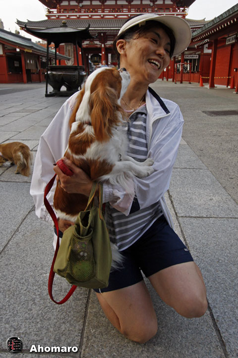 今朝もモモちゃんの涙目がとまりません。ここはTBSのドラマ「アンドーナツ」でお馴染みの伝法院通り。ここの景色、今のモモちゃんにはどのように見えているのでしょうね・・・。 チェスちゃんにご挨拶をするクッキーちゃんろクレアちゃんのおばあちゃん。 お馴染みバビちゃん。今朝も元気で愛想良しですね。 今朝は早いお着きのハッピーちゃん。あほまろが着いた時にはすでにみんなと遊んでいました。そして、今朝は始めてあほまろに黙って撫で撫でさせてくれたんですよ。これからもっともっと慣れてもらいたいよね。 ハッピー君のおかあさん、バビちゃんのおかあさんともすっかり仲良しになったようです。境内は犬を通じて、人間同士の交流の場でもあるんですよね。 ボブちゃんも仲間に入りたいがってますね。いつも逢う犬同士だって人間以上に仲良しなんです。 クッキーちゃんにクレアちゃん。今日もココアちゃんが来るまで待ってましょうね。 浅草寺の開門を待つメイちゃんとおばあちゃん。今朝はちょっと蒸し暑いのでメイちゃんの機嫌が悪かったかもね。 私はとっても気分が良いの。今朝のメグちゃんはいつになく親しげな態度でしたよ。 モモちゃんです。こんなにスマートなのに、この犬種としてはちょっとメタボなんですって。もっと運動しなくっちゃね。 元気に駈けて来たサツキちゃん。モモちゃんに挨拶したがっているのに、無視しちゃんいけないよ。それとも良く見えていないのが原因なのかな。 ようやくやて来ましたココアちゃん。 カメラを向けると逃げ出してしまうので、おかあさんに抱っこされているところを撮りました。 いつも、何で私ばっかり撮ってるのって顔されてしまうのですけど、カナダのおとうさんに可愛い顔を見せてあげたいのですよ。ハイ、おとうさんに向かって何か喋ってよ。え、早く帰って来いだって・・・。 ナナちゃんです。この犬種は小型の狩猟犬なので運動は欠かせないのですよね。 でも、毎朝おとうさんが散歩に連れて来てくれるので、メタボにはなってませんよね。とっても人なつっこいワンちゃんなんですよ。 元気になったゴン君とヒナちゃん。ヒナちゃんは相変わらずモモちゃんに、う〜って言うんですよ。 レオ君。最近はおばあちゃんの顔をまったく見なくなってしまいましたね。涼しくなるまで散歩は無理なのかな。 チャコちゃんとシロ君、久々に登場。 我が家の前で別のコースを歩いて来たナナちゃんと遭遇。