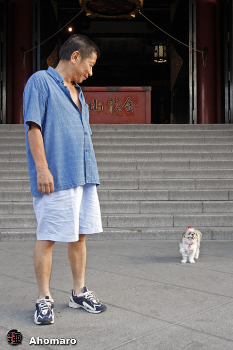 雲ひとつ無い晴天の朝を迎えましたが、あほまろの頭の中は曇天なんです。おまけに、何年も同じことを続けているモモちゃんのとの散歩の準備も狂ってしまいましたよ・・・。モモちゃんの首輪にリードを付け、玄関を出てエレベーター前で最初に気付いたのは、な、なんと、散歩用のバッグと思って肩にかけて来たのは仕事用のバッグじゃないですか。気付いて良かった、慌てて戻りいつものバッグと取り替えたのは良かったのですが・・・。今度はカメラを忘れてしまったんですよ。 再び戻って持ち物をしっかり確認をし、玄関を出たのでしたが、あっちふらふらこっちふらふらのモモちゃんよりも、今朝のあほまろはただボーっとしてぼけ老人のようです。なぜボーっとしているんでしょうね・・・。 こんな時は、更に悲劇が待ちかまえていたのです。雷門前でいつもの写真を撮ろうとすると・・・、メモリーが・・・。二度目の戻りで、あれほど入念にチェックしたっていうのに、忘れてしまったんですね。そこは失敗は成功の母、以前にも同じ経験をしたことから、バッグには予備のメモリーとバッテリーが入っているんですよね。天罰の神様、ざまー見ろ!なんて叫びながら、再びボーっと歩いたのでした。 あほまろの映画「ゆめまち観音」。今月13日に無事クランクアップを終え、昨夜はスタッフと関係者を招待して打ち上げを行ったのです。終わったといっても撮影が終わっただけで、まだまだ仕上げ作業が続いているのですが、この業界のしきたりとして、スタッフを労うため、クランクアップの打ち上げは欠かせない行事なのです。スタッフのみなさんは撮影を終えてホッとしているのを良いことに、次々と3月半の思い出を語りにあほまろの側に寄ってきます。話しに夢中になっているとついつい大声になり、喉も枯れてしまうのは当たり前、それを癒すために水分を補給しなければならないのです。それが、ミネラルウォータでも、炭酸水でも、甘いジュースでもポカリスエットでも効果は同じではありますが、昨夜の宴席にはそんなものはどこにも用意されていないのです。仕方なく、乾杯だけと思って次がれたビールで喉を潤し、再び映画の想い。グラスが空になると誰かしら勝手にグラス目一杯にビールを注いでしまうし、話しに夢中になると喉は渇くし、そんな繰り返しが延々続いてしまうとお腹はビールでチャンポンは長崎なので、お腹はちゃぽんちゃぽんですよね。これ以上ビールなんて入らないよ・・・、その時、テーブルの隅に置かれた芋焼酎に目がとまったのが、ただボーっとする原因だったんのです。 いやぁ〜、酒を断とうと努力しているあほまろにとって、昨夜の打ち上げは堪えましたよ・・・。だから今朝は、頭の中の歯車が狂ってしまったんですよね。どうりで今朝のモモちゃん、抱っこするとあほまろから大きく顔を逸らしていた理由がわかりましたよ。二日用の吐息は臭い臭い。 でも、ちゃんと午前6時の本堂前に間に合いましたよ。そこは、モモちゃんの散歩にプロの技ってことかな、なんて「自負」しても誰も褒めてくれないし・・・。そう、「自負」って言葉を最近のあほまろ良く使っているようですね。この言葉の意味を「プライド」と同じ意味で使っていたのですが、辞書を調べるとちょっと違った表現にも見えてきました。 『自分の才能や能力、学問、業績などがすぐれていると信じて誇ること。他から見てどうであろうとも、自分自身がすぐれていると信じ、それを頼みとして誇る場合に使う』 ま、意味にはさほど変化が無いようなので、あえて訂正はしませんが、あほまろの日記、特に、撮影中の3月半の文章たるや、ヒドイそのものですよね。なにしろ時間に追われ、思いつくままに殴り書きをしていたのでごめんなさいね。書き直そうかと想った箇所も多いのですが、あほまろにとってはどんな文章であろうと、その時の気持ちが見えてくるのです。それが日記の性格ですよね。なんて、これも自負。