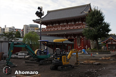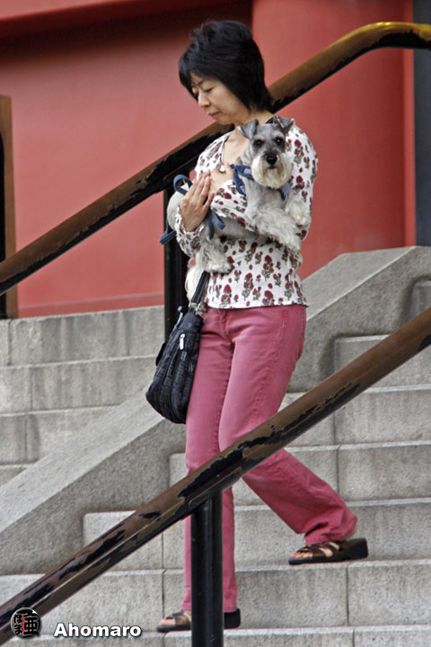 涼しいというか、肌寒い風が吹く朝です。吹く風に秋の気配・・・。つい先日までの暑さはいったいどこにいってしまったのでしょうね。いつも朝の散歩でお逢いする方々も長袖になったり、普段より一枚多く羽織ったりしていましたよ。浅草も急激に秋が迫ってきたんですね・・・。 急に寒くなった今朝のモモちゃん、相変わらず歩こうとしません。しかし、抱っこをして歩いていても汗がでないので、あほまろの腕に抜け毛がまとわりつくことも無く、また、モモちゃんの体温で心地よさも感じてしまいましたよ。散歩をしながら細くなってしまったモモちゃんの身体をさすっていると、身体のあちこちにしこりが出来ています。水が溜まった跡のような丸い黒いしこりがあちこちに飛び出しているのです。その中で一番大きいのは、今までに何度も破れては出来てくる首筋のしこり、最初は気になって病院で抜いてもらたこともあったのですが、いつも自然に治ることを良いことに自然体のままにしているのです。モモちゃんだって、病院で痛い注射をされるのは嫌いですからね・・・。どんどん細くみすぼらしくなっていくモモちゃんですが、どんなことがあっても、あほまろは最後まで散歩に付き合ってあげますよ。そんな気持ちを知ってか知らずか、モモちゃんは抱っこされたままあほまろのほっぺに、ぴったり自分の頬をくっつけて満足してましたよ。 浅草寺境内の秋といえば銀杏の実の臭いですね。今年実を付けた銀杏は例年よりも多いようです。特に影向堂のお庭の銀杏は鈴なりの実を付けていますよ。この銀杏には、雄株と雌株があって実が成るのは雌株といわれています。この雌雄の区別は葉の形でできるという説もありますが、両方の葉を拾って比べてみてもその違いが解りません。銀杏が鎮咳去痰作用などの薬草としての効力を見付け、成分を抽出して薬に応用しようと研究をする機関のホームページに書かれていましたよ。 薬用になる一方、銀杏を食べ過ぎるとビタミンB6欠乏するので、大量に摂取すると中毒になるそうです。それは特に子どもに多いようで、たとえ一粒でも危険な状態になるとのことです。秋の味覚も、子どもにとっては要注意の食べ物のようです、気をつけましょうね。