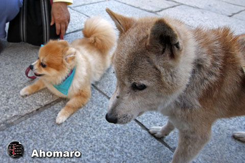 境内のお地蔵さんを詣でているところでモモちゃんと遭遇。これから桜橋を回ってくるんだって。今のモモちゃんにはそんな遠くは無理ですよね。 メイちゃんも歩くのはあまり特異じゃ無いようです。いつもおばあちゃんの自転車に乗っているからなのかな・・・。 バビちゃんはちょっとメタボなので、歩くのは苦手。バビちゃんのおかあさんも今朝はカーディガンを着てきましたね。 チェスちゃんとおとうさんが並んで座っています。可愛いでしょ。 本当にチェスちゃんは可愛いんだから。毎朝、通勤で通るお姉さんたちにも人気者なんですよね。 クッキーちゃんにクレアちゃんもチェスちゃんがお気に入りなんですよ。 おや、何を見上げているのでしょうね。おかあさんと一緒の目線が可愛いハッピー君です。 バビちゃんは他のワンちゃんは苦手だったのですが、いつの間にかモモちゃんとはご挨拶が出来るようになってくれましたね。 こちらもいつの間にか、バビちゃんのおかさんが大好きになってしまったメグちゃんです。 いつも元気なサツキちゃん。モモちゃんとも挨拶出来ますよね。 ランディ君とアリスちゃんを出迎えるチェスちゃん。 ヒナちゃんとゴン君。あほまろは本堂の階段上に居たので挨拶出来ずにごめんなさいね。 ようやくココアちゃんが来ましたね。 毎朝、ココアちゃんが来るまで本堂前で待っているんですよ。 でも、今朝は遅かったのでみんな帰ってしまったよ・・・。辺りをキョロキョロ探しているココアちゃんでした。 ハイ、宝蔵門の大提灯の下を通ってナナちゃんも到着。 そしてモモちゃんとご挨拶。 ハッピーちゃんはお参りを済ませてお帰りです。抱っこされながらもこっちを見てますね・・・。 団十郎君です。
