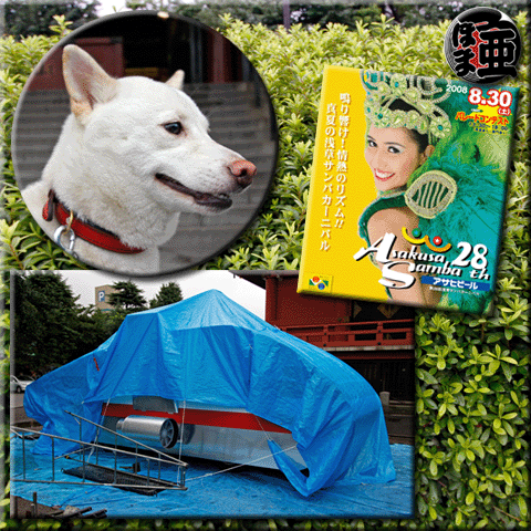 ゲリラ豪雨とは良く名付けたものですね・・・。最近では、予測不能な局地的大雨が急増しており、気象庁でもデータ解析システムや警報発令態勢を整えていても予測は不可能なのだとか。昨日も朝から関東地方で降った猛烈な豪雨は、台風並みの大きなつめ跡を残していきました。ニュースを見ると、幸い、人的被害はなかったものの家屋の浸水や土砂崩落などの爪痕を残していきました。とはいっても、まだ過去形じゃないようですね。太平洋側に停滞した前線の影響による大雨は、今日これからも広い範囲でゲリラ豪雨となる恐れがあると予想されています。でもね、気象庁でも予測不能な局地的大雨と発表しているほどの異変なので、その予想も信用できないのですよね。 今日の浅草では、恒例にサンバカーニバルが開催されます。今朝早くからサンバを踊る道具を抱えた若者が大勢歩いていました。今、この日記を書いていると、秘密基地の下で大きな金属音が響いています。ベランダに出て見下ろすと、既に雨は上がり、係のみなさんが、カーニバルの観覧席にパイプ椅子を運び込んでいる音ですね。これを書き上げたら、事務局に開催を確かめよと思っていたのですが、これじゃ確かめなくても決行するってことなのでしょうね。 あほまろには映画の編集作業が残っているのですが、今日は午前中だけの作業にして、午後からはサンバの記録写真を撮りに行ってきますよ。今年は、取材場所が二カ所に分けられ、取材ゼッケンの色で場所が決められてしまったので、今年は残念ながら出発セレモニーは撮ることができません。雷門前でパレードを待ちかまえることにします。ただ心配なのは雨ですね。こんな時こそ、気象庁の予報が外れて欲しい、なんて思ってしまったりするんですよね・・・。 サンバカーニバルのコース一帯にバリケードが取り付けられました。大勢の観客なので、危険な箇所に立ち入らないようにとの配慮でしょうけど、いつも思うのは、何でこんな所にまでバリケードが必要なのでしょうね・・・・。 近所の方と朝のご挨拶、サンバは浅草の「さんばか」のひとつになってしまったよね・・・。何ですか「さんばか」って、三社祭、花火大会、そしてサンバを総称して「さんばか」っていうんだよ。へぇ〜、それは知らなかった、なんとなく「さんばか」って響き、あほまろは、「サンバカーニバル」を縮めて言ってるように思っていたんですけどね・・・。 激しい雨の後なので、今朝はナナちゃんがお供でした。モモちゃんは、あほまろの書斎でお休みです。変なところで写真を撮ってしまったので、まるでモモちゃんがのんびりと酒を飲んでいるかのように見えてしまいますね・・・。昔風のとっくりは、以前に群馬県の「木枯し紋次郎」で見付けたおみやげなのです。買った時は当然、中にお酒が詰まっていましたけど・・・、今は酒を止めたあほまろには思い出したく無い出来事が有ったもので・・・、捨てられずにとっていたのです。 雨でも元気なナナちゃんでした。今朝も「おとうさん」って言われてしまいましたよ。失礼ね。