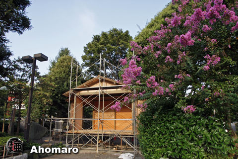 『今朝の浅草神社』 本殿の横の木々が取り払われてしまいました。いったい何が始まるのでしょう。