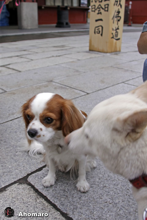 ボブちゃんも観音様のお手網でお参りです。あほまろも毎朝、観音様と握手をしているんですよ。もちろん、モモちゃんもナナちゃんもね。 |