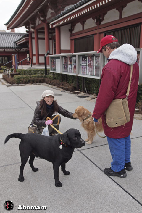 モモちゃんと一緒に散歩をしてきました。このところ寒さが厳しくて可愛そうだったので、あまり遠出をさせていなかったモモちゃんでしたが、今朝は久しぶりの遠出にも関わらずとっても元気に歩いてくれました。目がほとんど見えなくなったモモちゃんですが、歩く時はしっかり地面を見つめながら歩いているのです。時々障害物を見つけると除けるように飛び上がったりしている、ちょっとは見えているのでしょうね。我が家を出てすぐは立ち止まったままで全く歩こうとしないのです。しかたがないので、抱っこをしながら、やっぱり連れて来なければよかったかな、なんて思ってしまったのでしたが、モモちゃんを降ろして雷門前で写真を撮っていると、何を思ったのか、リードをぐいぐい引っ張って歩き出したのです。まるで、自分はまだ大丈夫なんだと訴えているかのようでしたよ。それからは、いつもの全コース立ち止まることも無くしっかりした足取りで歩いてくれたのでしたよ。 |