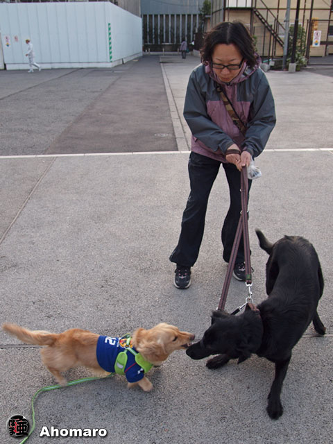 ダンディ君ダメですよ。ちっちゃいワンちゃんたちの中に割り込んだら可愛そうでしょ。