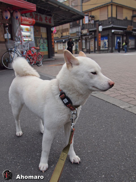 散歩の帰り、伝法院通りの入り口で、気取ったナナちゃん、はいポーズ。