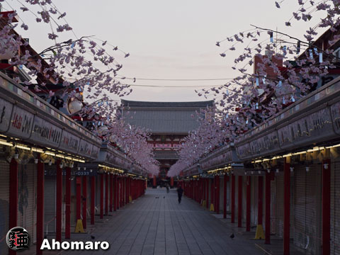 平日の朝は、昨日の喧騒がウソのように静かな雷門ですよ。 4月8日は花まつり。今年は桜も残る花まつりになることでしょう。 花まつりには、幼稚園児が白い象さんを曳きながら、仲見世を行進するのです。 その頃には、ここの桜は満開をちょっと過ぎた頃かな。