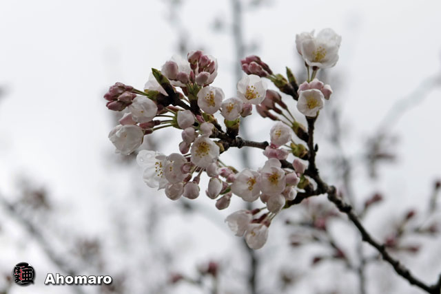 雨上がりの桜、可愛そうなくらい寒そうでしたよ。