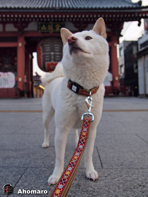 本堂前では、メイちゃんが遊んでいました。まだ開門時間まで10分以上もあったので、ナナちゃんは先に浅草神社でお参りをしてきましたよ。